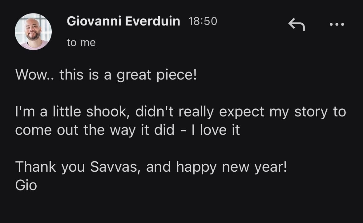 Email reply the moment he saw the story