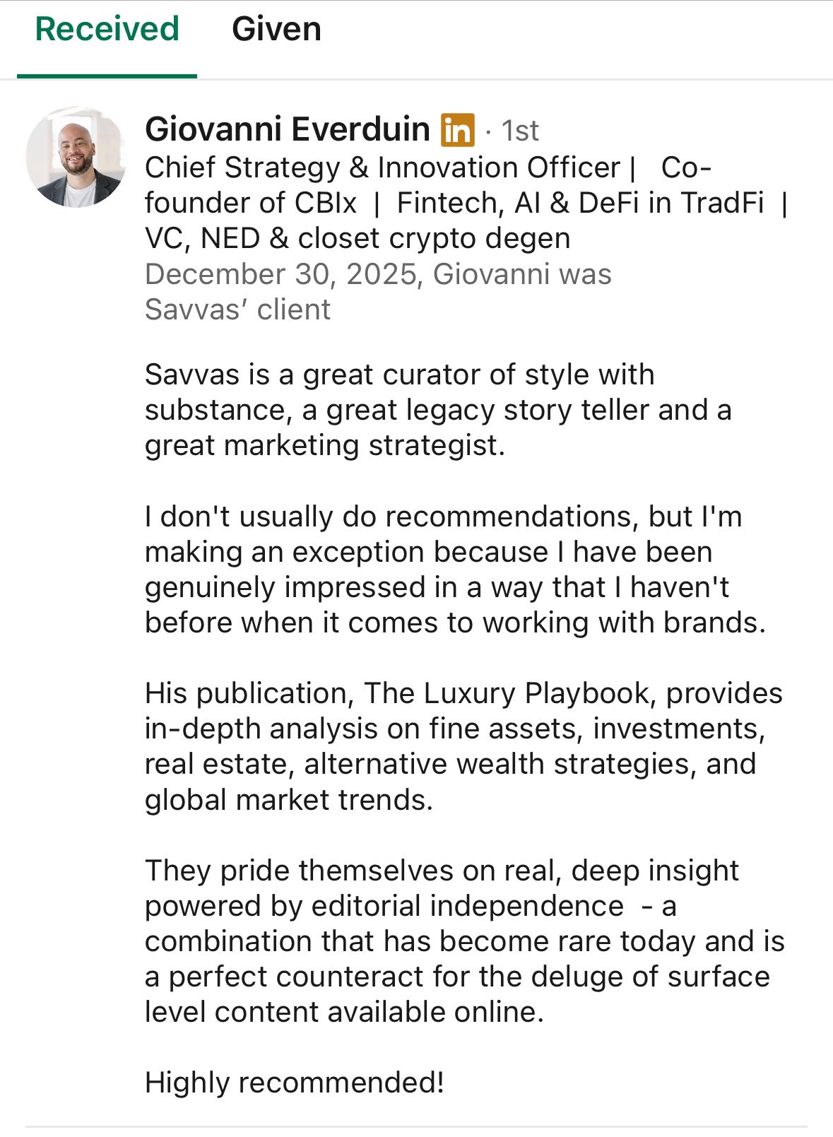 LinkedIn public recommendation