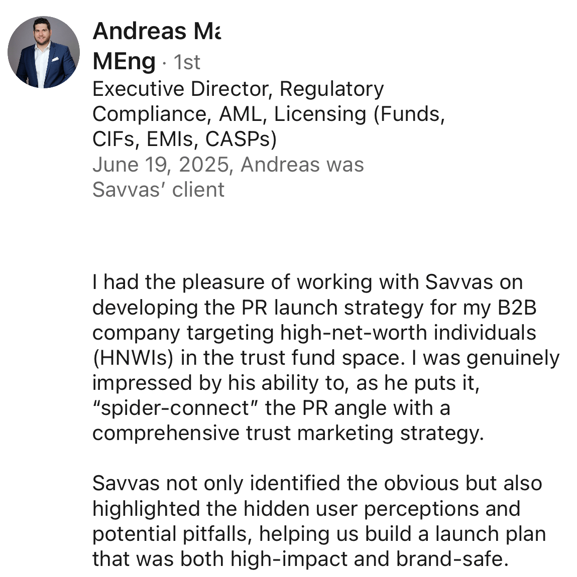 Here’s what they say about us (one of the many exceptional reviews - directly from LinkedIn recommendations):